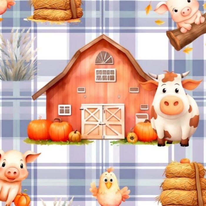 Tecido Tricoline Digital Fazendinha Fundo Xadrez