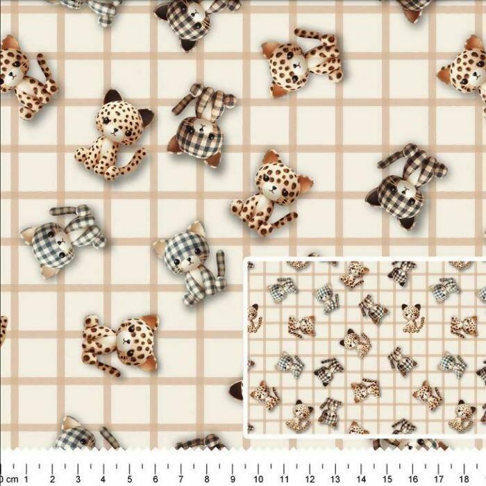 Descrição Tecido Tricoline Digital Felinos Fofos