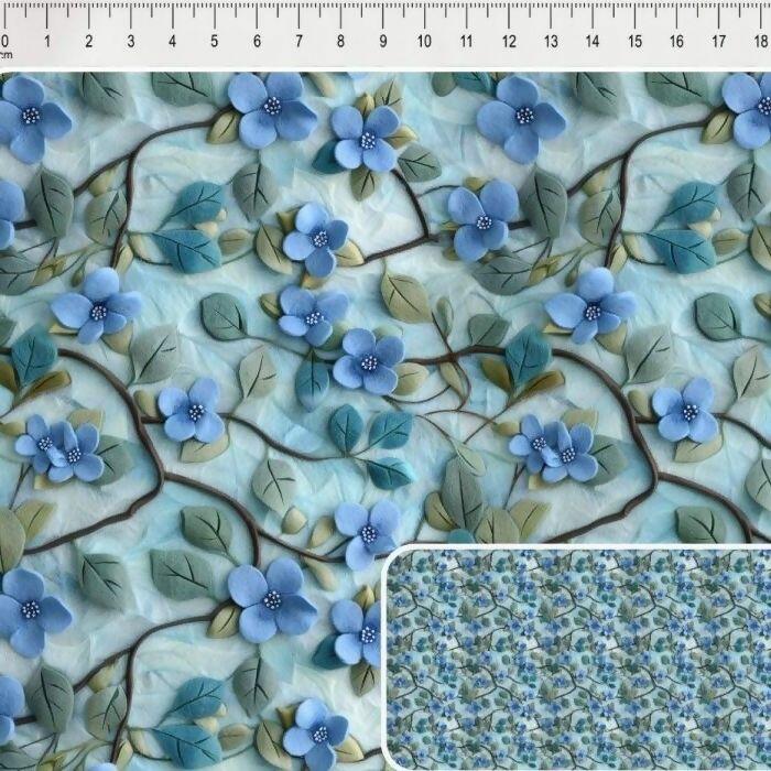 Tecido Tricoline Digital Flor Azul