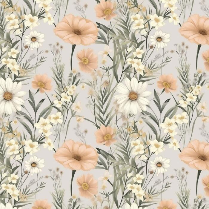 Descrição Tecido Tricoline Digital Flor Pastel Margaridas