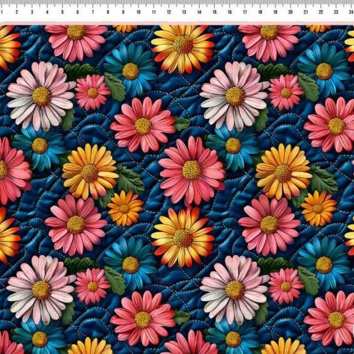 Descrição Tecido Tricoline Digital Floral Amarelo e Rosa