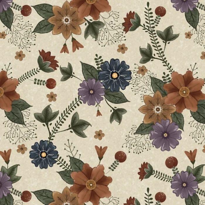 Tecido Tricoline Digital Floral Amo Aplique Fundo Bege