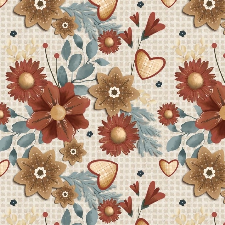 Tecido Tricoline Digital Floral Amor e Café Claro
