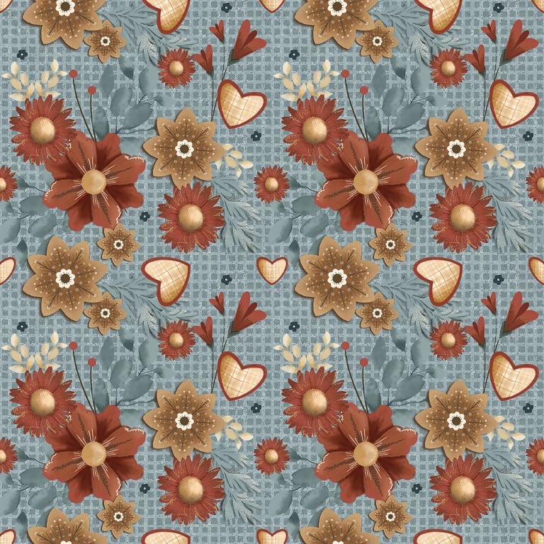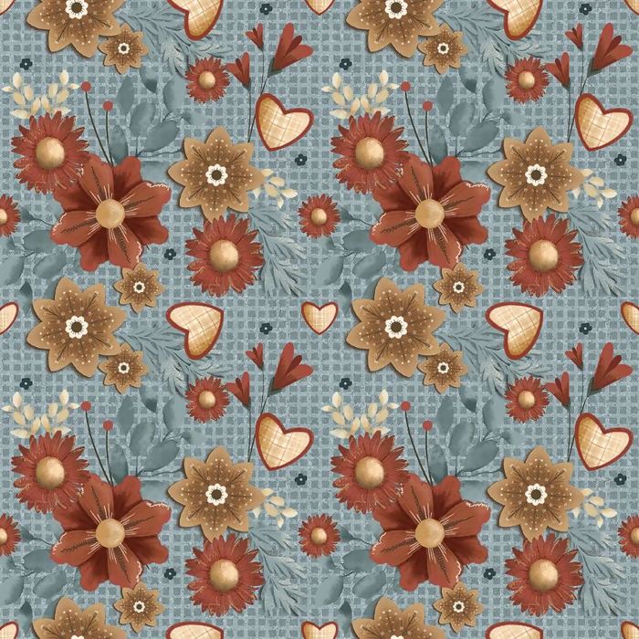 Tecido Tricoline Digital Floral Amor e Café Escuro