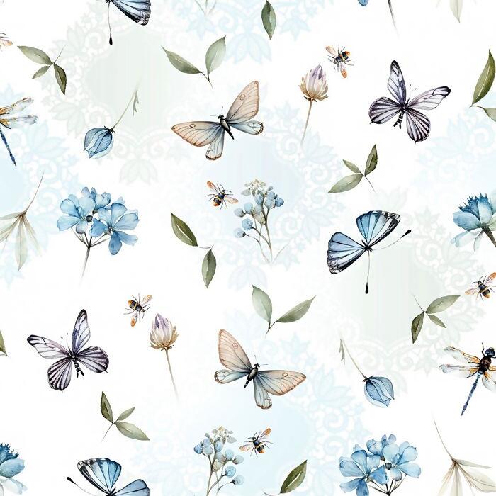Descrição Tecido Tricoline Digital Floral Blue Garden