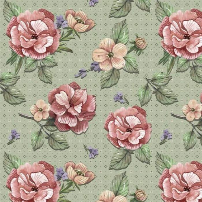 Tecido Tricoline Digital Floral Chic Fundo Verde