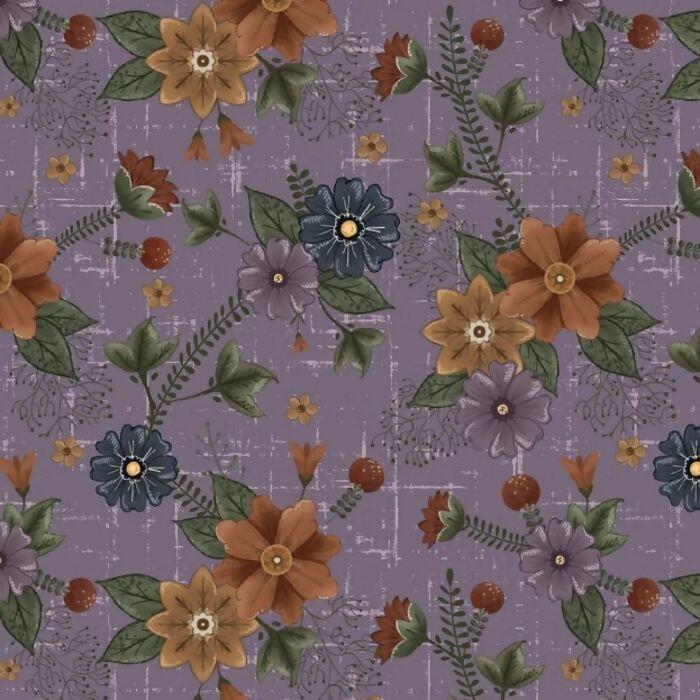 Tecido Tricoline Digital Floral Country Fundo Violeta