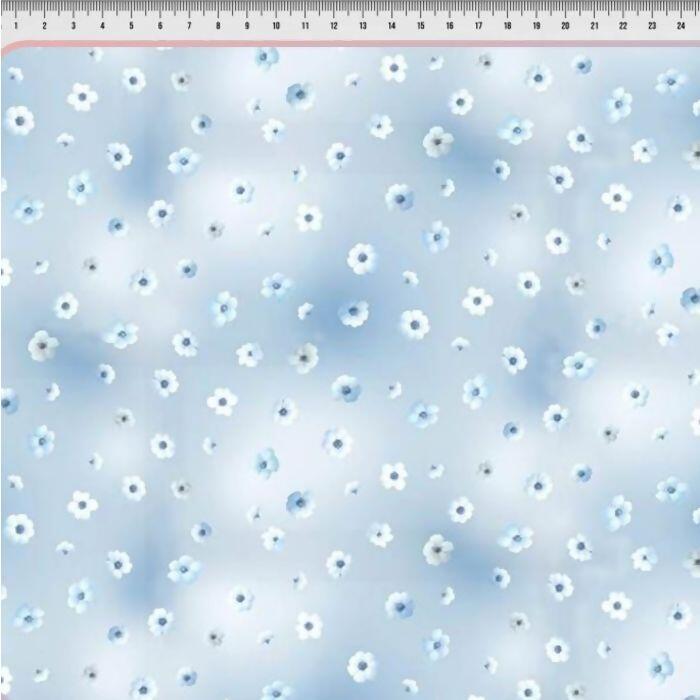 Descrição Tecido Tricoline Digital Floral Espaçado Azul