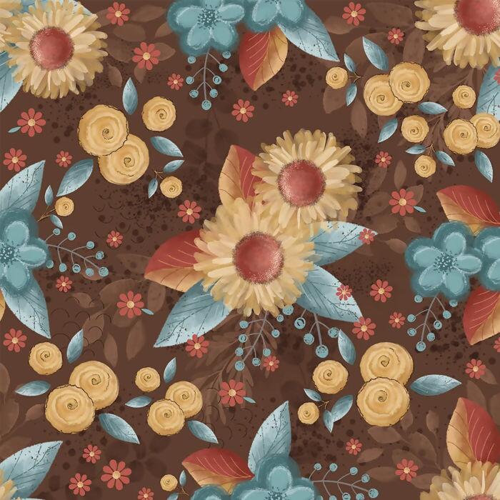 Tecido Tricoline Digital Floral Fadas Fundo Café