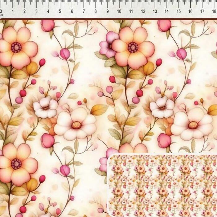 Descrição Tecido Tricoline Digital Floral Fundo Nude