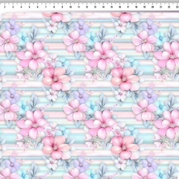 Descrição Tecido Tricoline Digital Floral Listra Horizontal