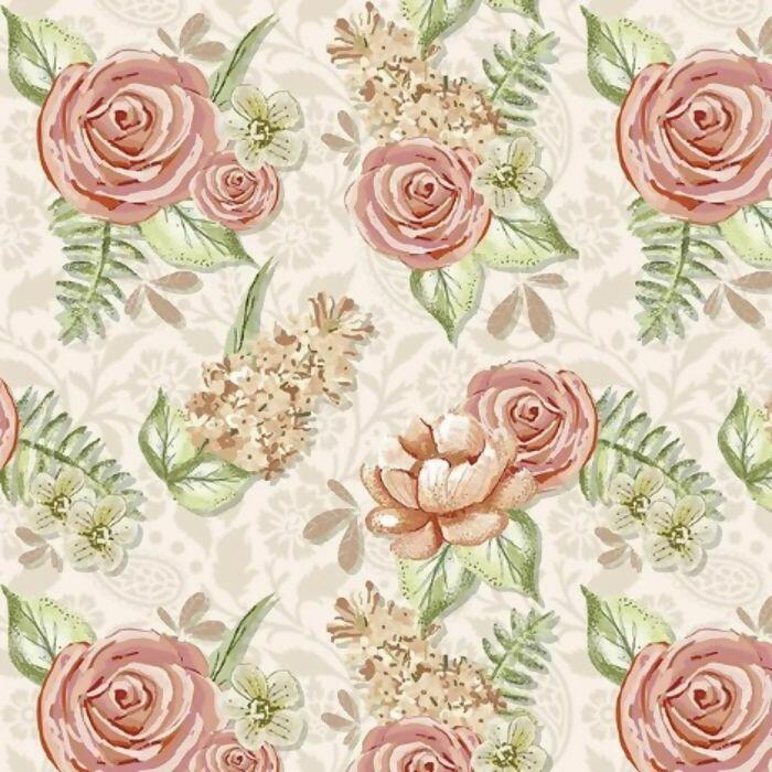 Descrição Tecido Tricoline Digital Floral Romântico Fundo Bege
