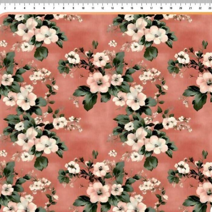 Descrição Tecido Tricoline Digital Floral Vermelho
