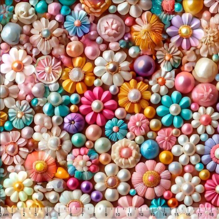Tecido Tricoline Digital Flores Coloridas Pedraria