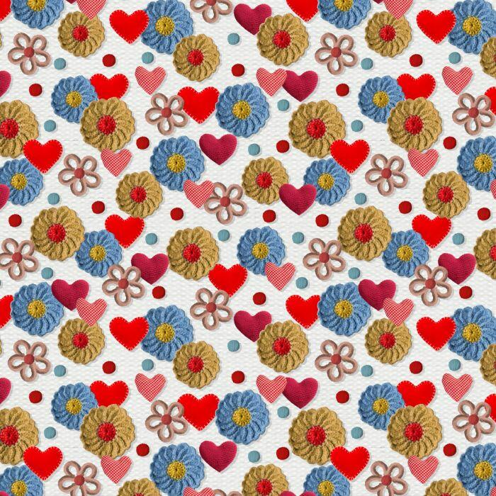 Descrição Tecido Tricoline Digital Flores Corações Fuxicos