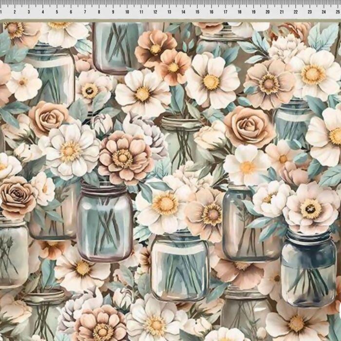 Descrição Tecido Tricoline Digital Flores e Vidros