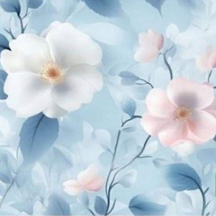 Descrição Tecido Tricoline Digital Flores Fundo Azul