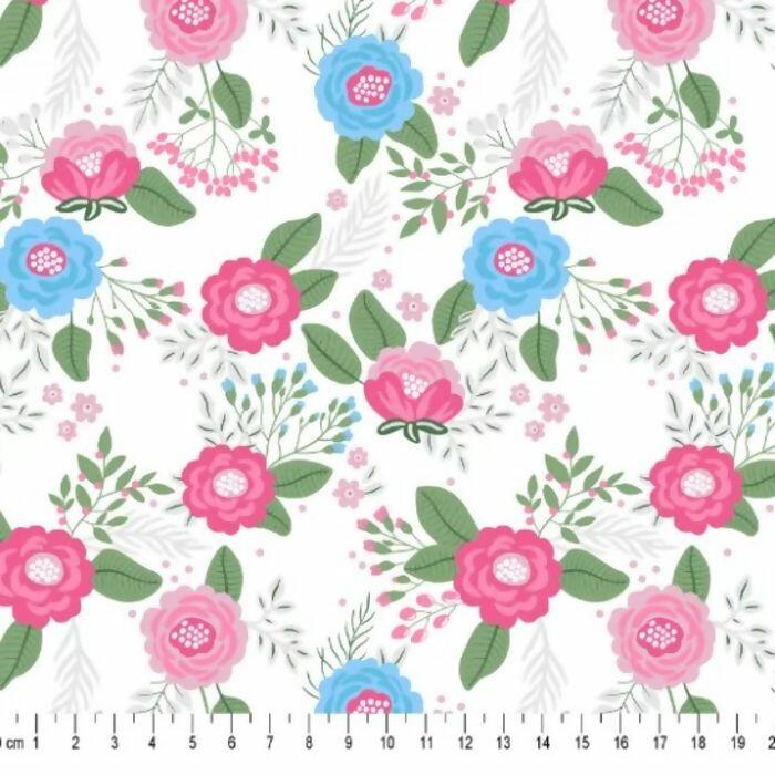 Descrição Tecido Tricoline Digital Flores Fundo Branco