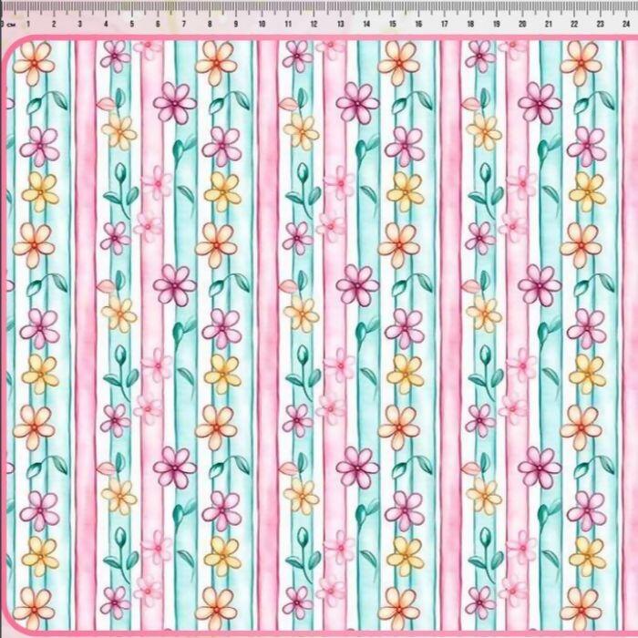 Tecido Tricoline Digital Flores Fundo Listrado