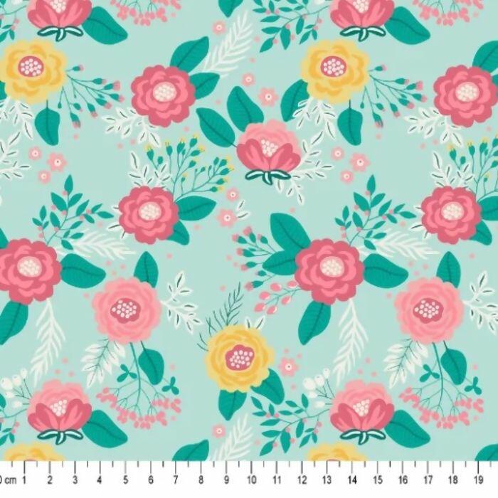 Tecido Tricoline Digital Flores Fundo Verde