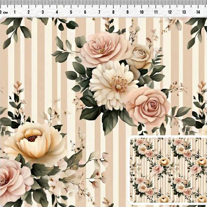 Descrição Tecido Tricoline Digital Flores Listras Bege