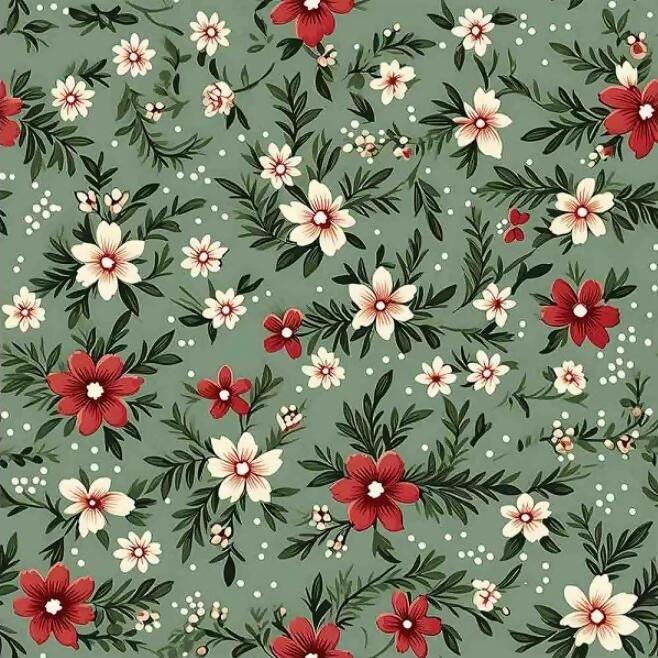 Tecido Tricoline Digital Florzinhas Natal 1