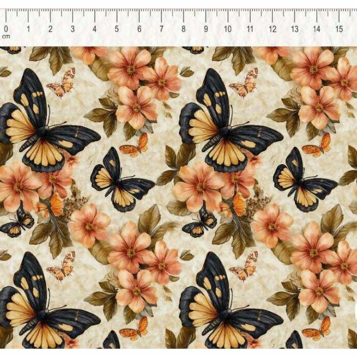Descrição Tecido Tricoline Digital Flove Borboletas