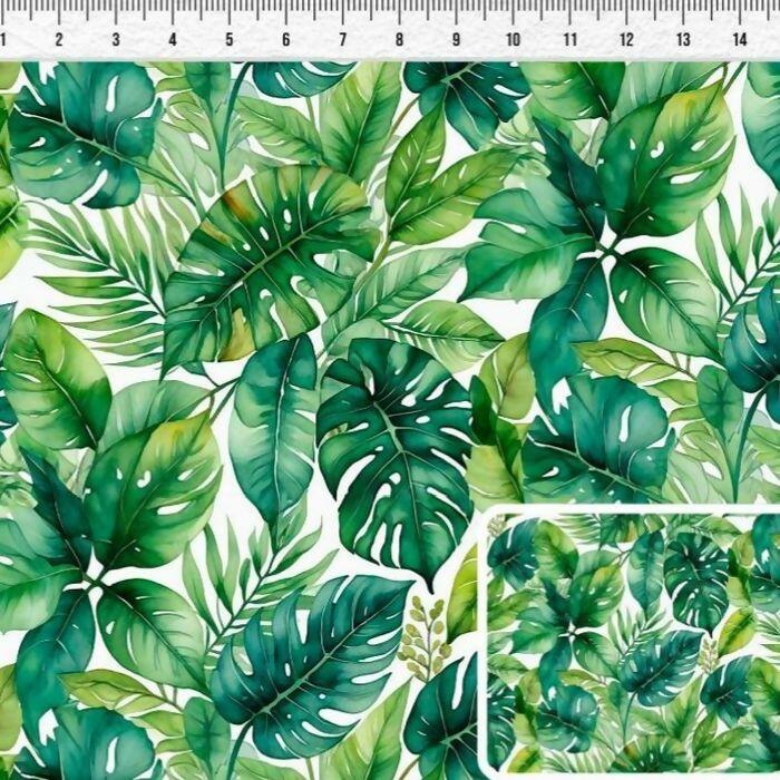 Descrição Tecido Tricoline Digital Folhagem Fundo Claro