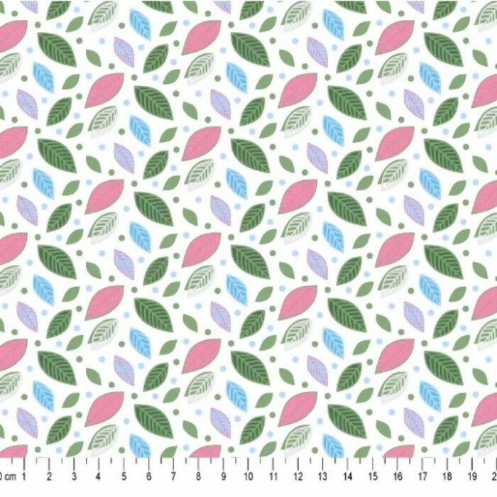 Tecido Tricoline Digital Folhas Coloridas Fundo Branco