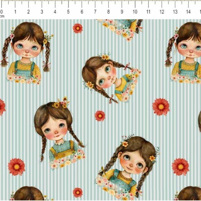 Descrição Tecido Tricoline Digital Friends Listras Azul
