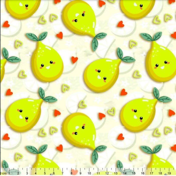 Tecido Tricoline Digital Fruta Pêra Sorridente