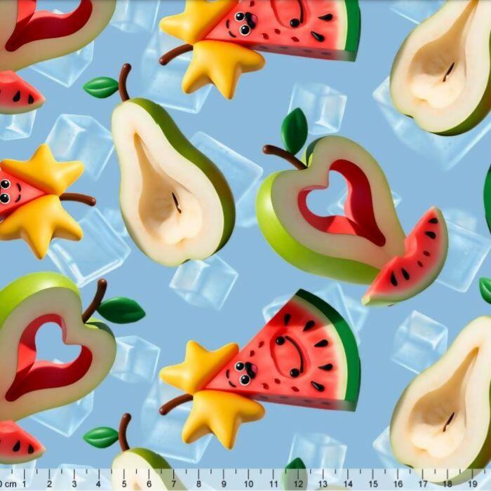 Descrição Tecido Tricoline Digital Frutas Fatiadas Fundo Azul