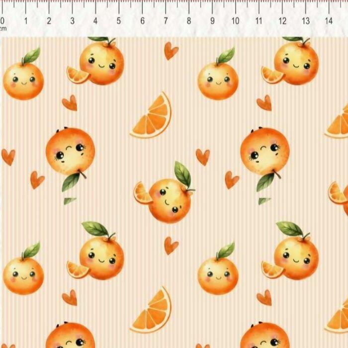 Descrição Tecido Tricoline Digital Frutinhas Laranja