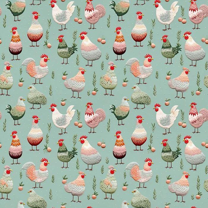 Tecido Tricoline Digital Galinhas Bordadas Ovinhos