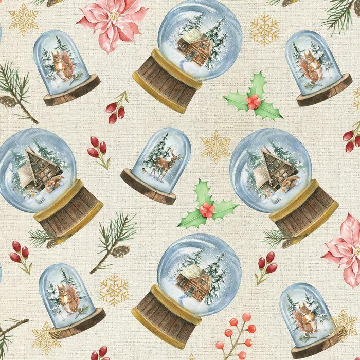 Descrição Tecido Tricoline Digital Globo de Neve Fundo Bege