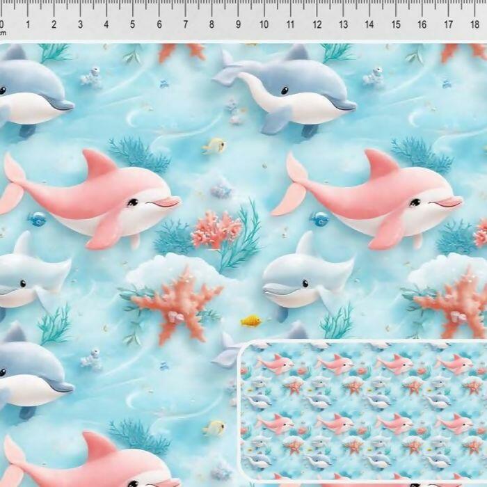 Descrição Tecido Tricoline Digital Golfinho Oceano