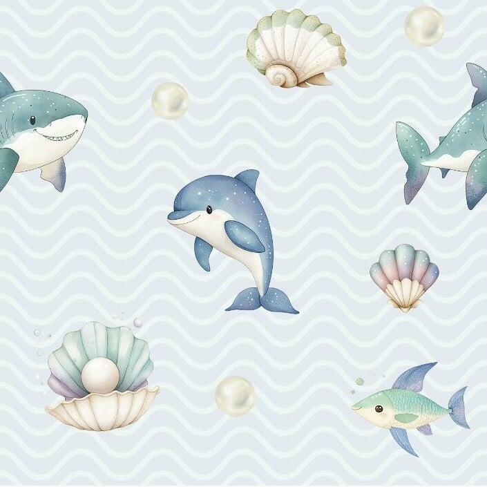 Descrição Tecido Tricoline Digital Golfinhos Fundo Azul