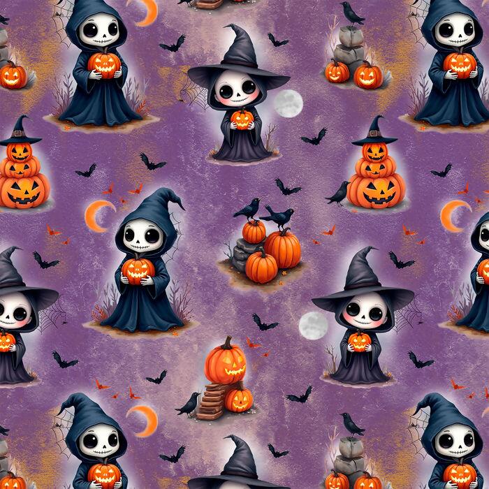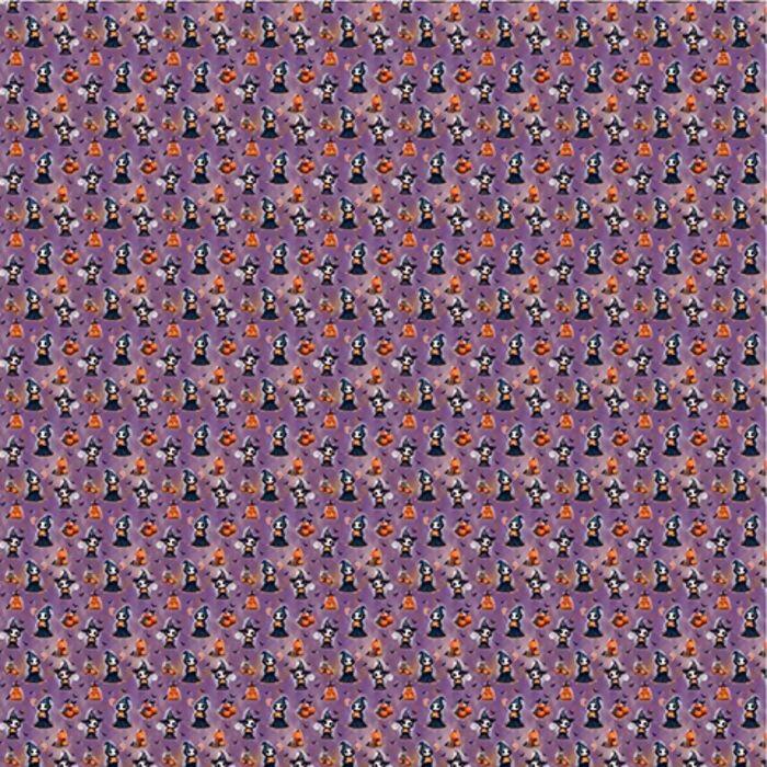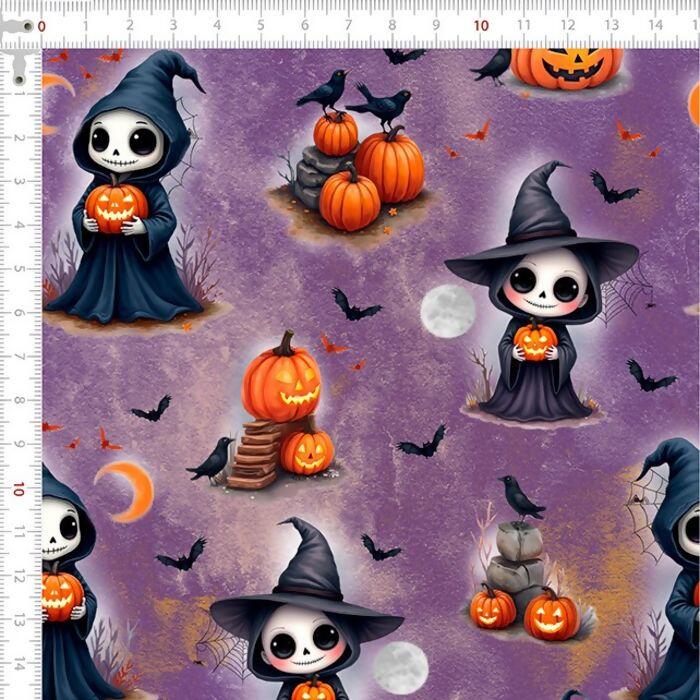 Descrição Tecido Tricoline Digital Halloween Abóboras Fundo Roxo