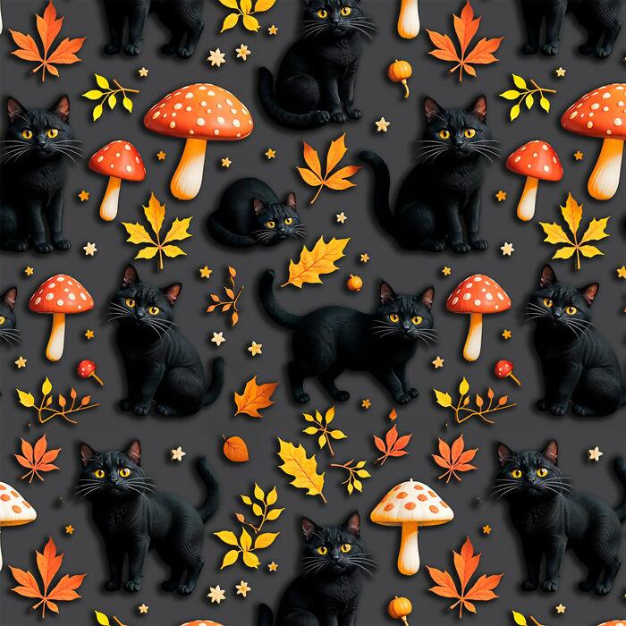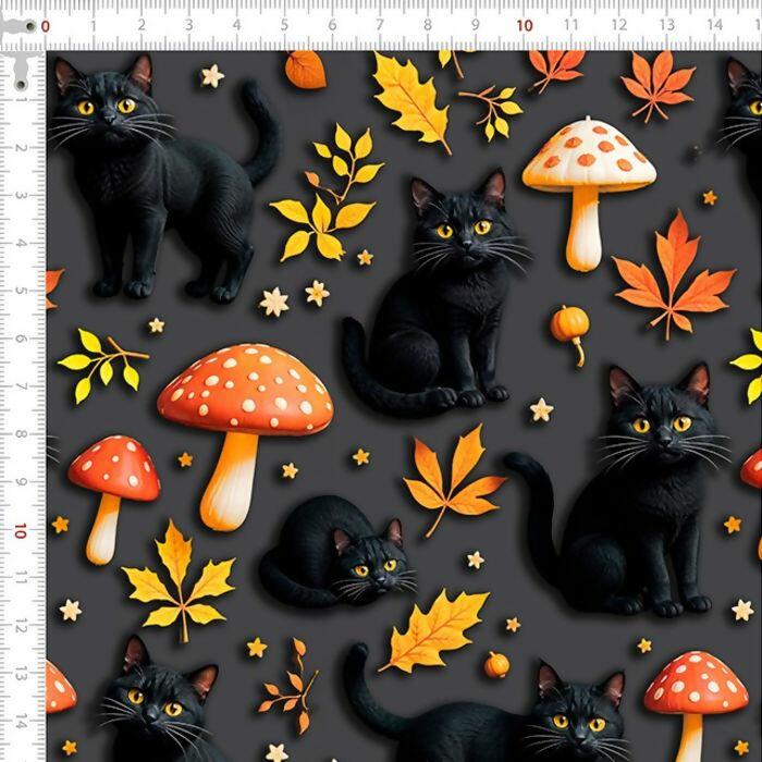 Descrição Tecido Tricoline Digital Halloween Gatos Pretos