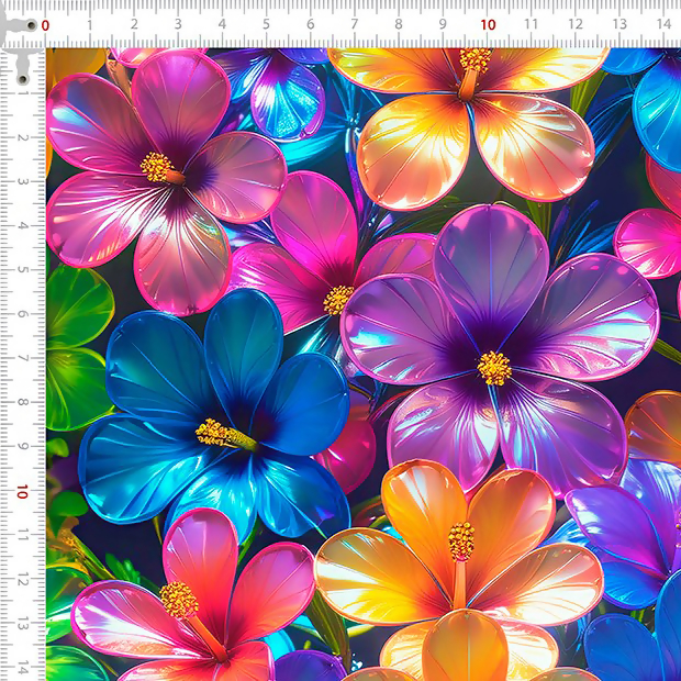 Tecido Tricoline Digital Hibiscos Coloridos