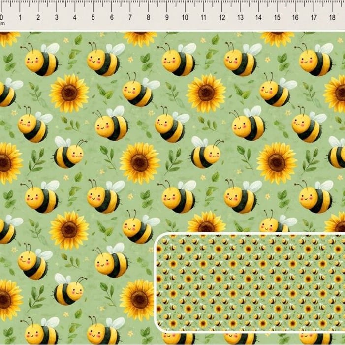 Descrição Tecido Tricoline Digital Honey Abelhas