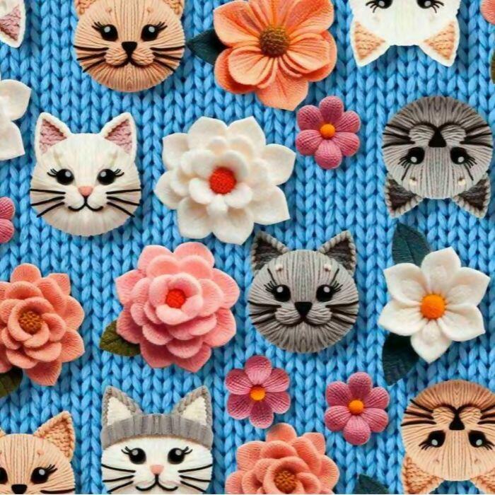 Descrição Tecido Tricoline Digital Jardim de Gatos