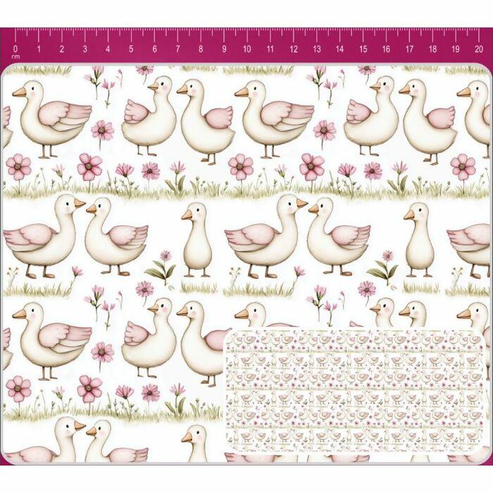 Descrição Tecido Tricoline Digital Jardim Fileira de Patos
