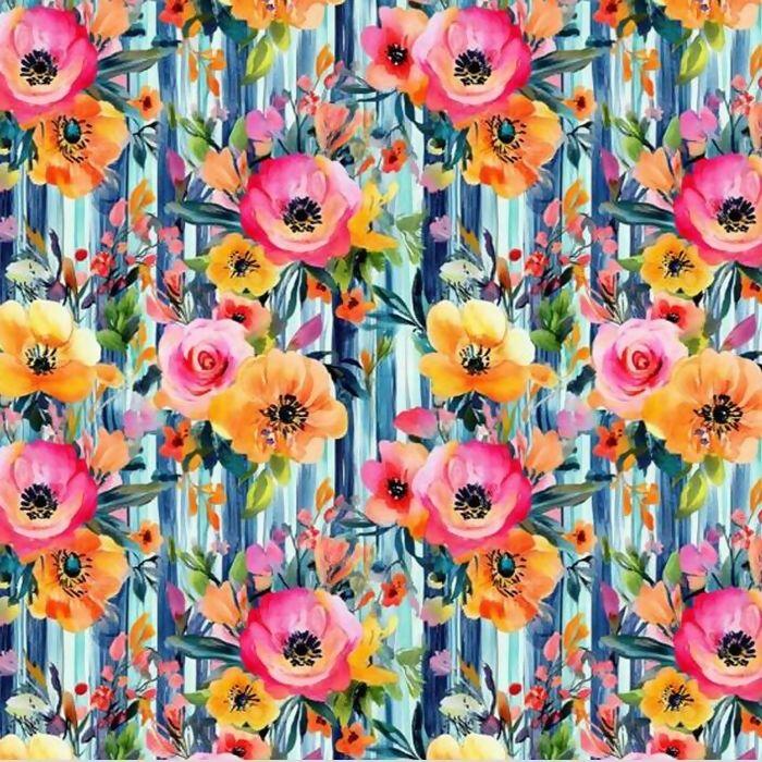 Descrição Tecido Tricoline Digital Jardim Listrado