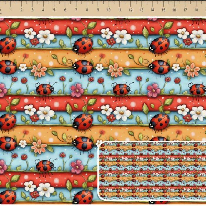 Tecido Tricoline Digital Joaninhas Listras Coloridas