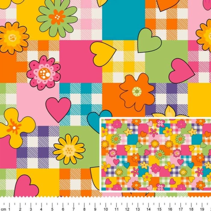 Descrição Tecido Tricoline Digital Junino Flores e Corações