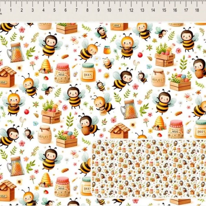 Descrição Tecido Tricoline Digital Lady Bees Abelhinhas