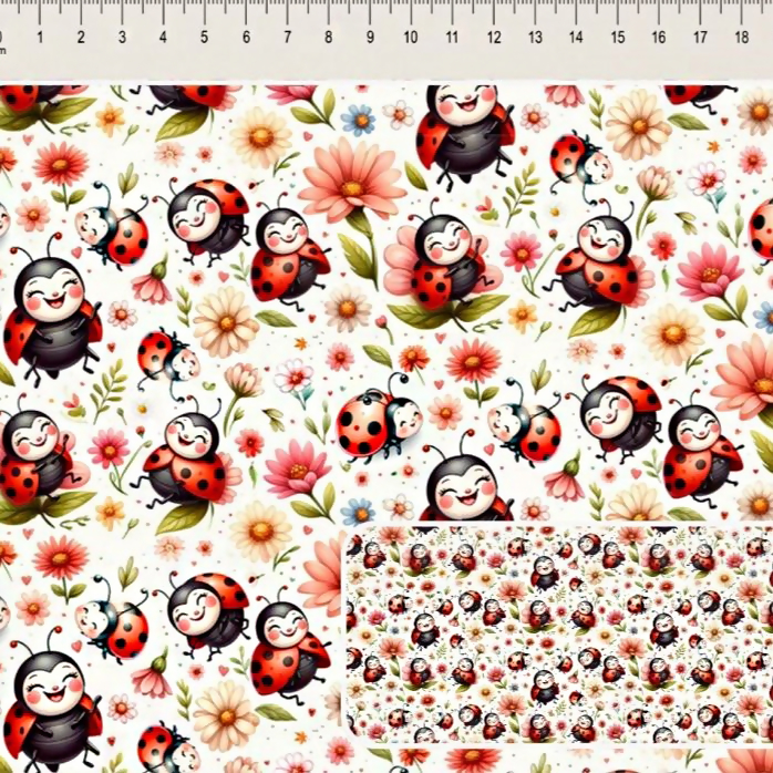 Descrição Tecido Tricoline Digital Lady Bees Joaninhas e Flores
