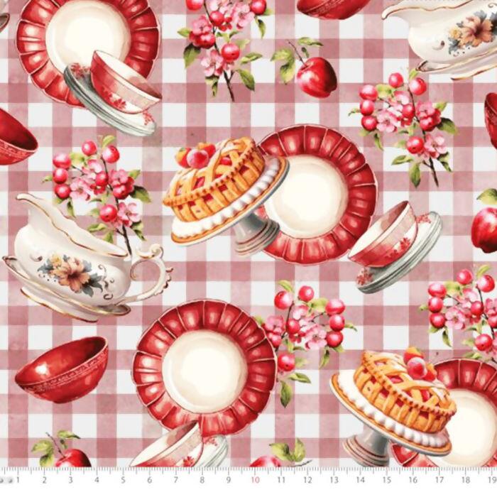 Descrição Tecido Tricoline Digital Lar Doce Lar Fundo Xadrez Rosa