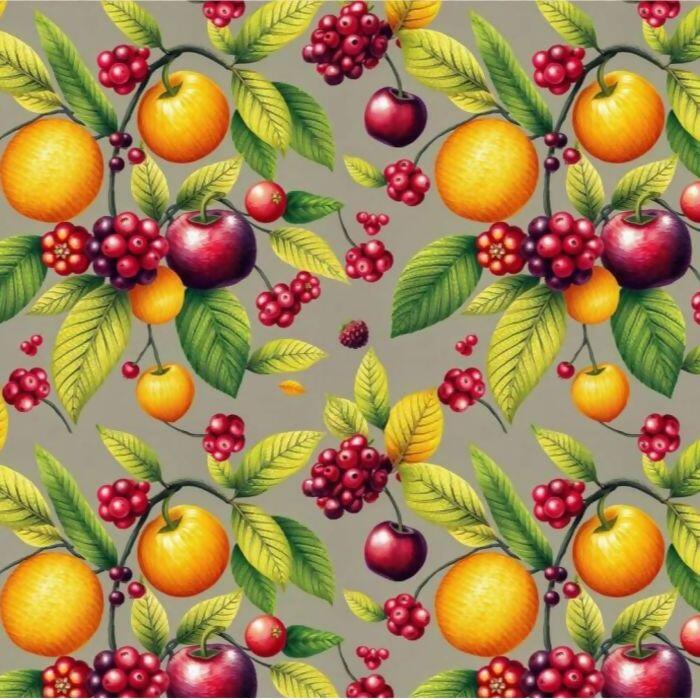 Descrição Tecido Tricoline Digital Laranja e Cereja Fundo Cinza